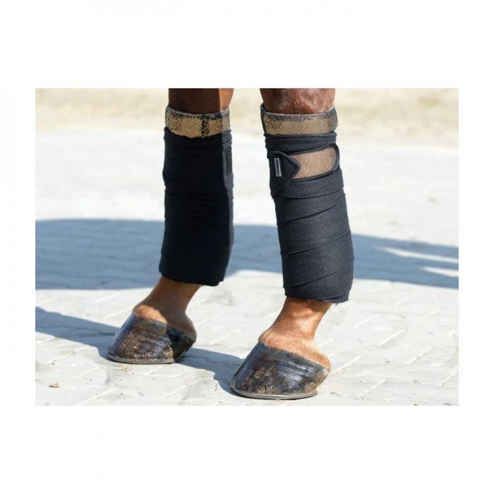 Extra soft fleece bandages from Busse. These bandages have a slightly roughened surface which gives them an anti-slip effect. The bandages are finished with a glittery fabric on the Velcro fastener. These bandages are delivered in a set of 4.