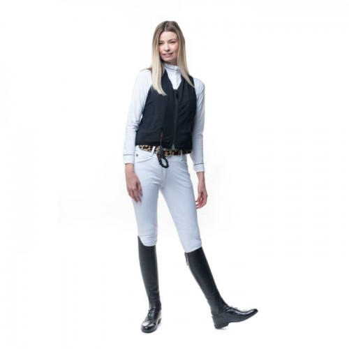 The Freejump Airbag blends elegant style with high-end safety. This vest provides optimized protection for the neck, back, lumbar area, sacrum, pelvis, and thorax in case of a fall. It can be worn over a light layer of clothing or under/over a compatible jacket with at least 15% elastane.
