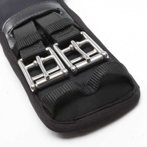 Dressage girth made of memory foam with a wide breastplate for better pressure distribution. The memory foam molds to the horse's body and therefore provides an optimal fit. Returns to its original shape after use. Has elastic girth straps on one side with stainless steel roller buckles. The girth also has a D-ring for attaching auxiliary reins.
