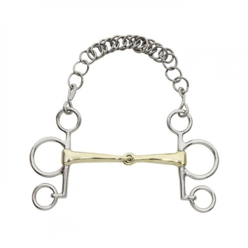"KavalBit" single jointed baby pelham is made of a horse- and allergy-friendly combination of stainless steel, which is very comfortable in the horse's mouth. At the same time, all welds and connections of the bits are excellently processed, so that abrasions and pressure points can be avoided. A pelham is fastened to the bit loop of the mouthpiece with the upper ring. The larger bit ring and the lower ring are connected to a pelham strap to which the rein can be attached. A pelham is usually used for jumping or eventing. When the reins are tightened, the pressure on the headpiece increases creating leverage.