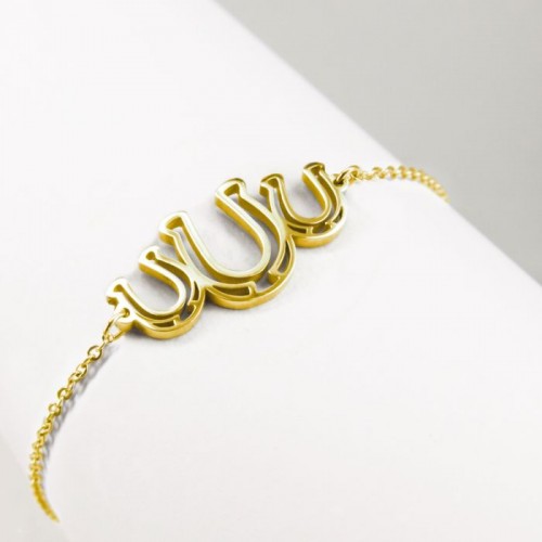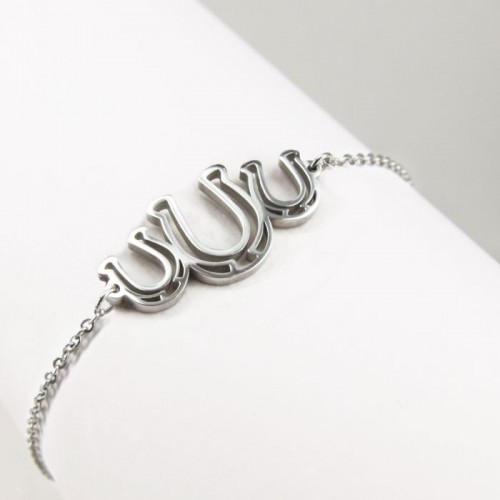 Horse jewelry with 3 horseshoes by Ponytail & Co. The bracelet consists of a chain of flat links. The bracelet is one size.