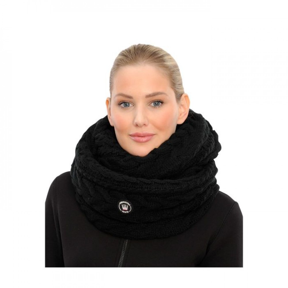 The perfect scarf for cold winter days at the barn. The chunky knit not only looks stylish but also keeps you nice and warm. The 100% knit round scarf features a Spooks logo on the front.